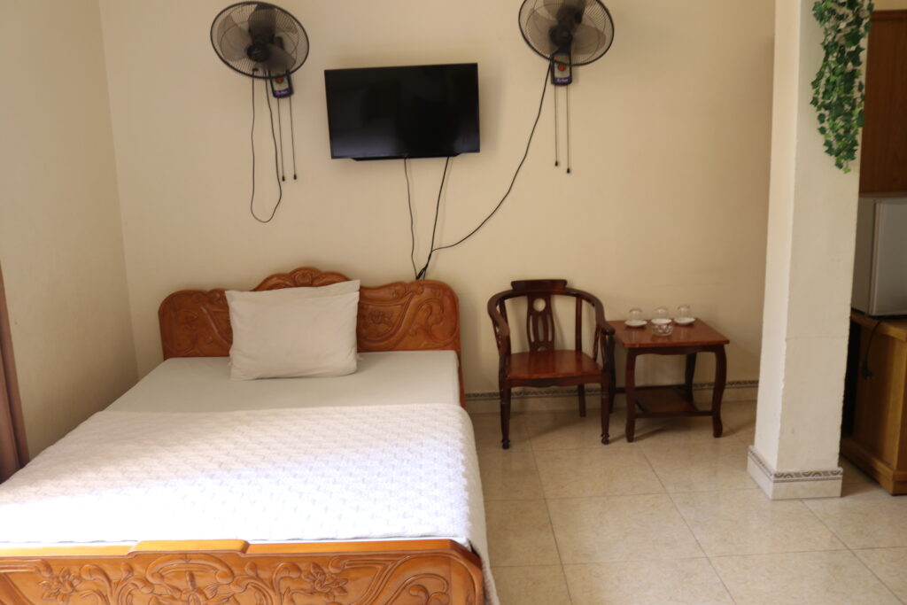 1 giường trong phòng tập thể 6 người cho nữ. Nhà vệ sinh bên ngoài phòng